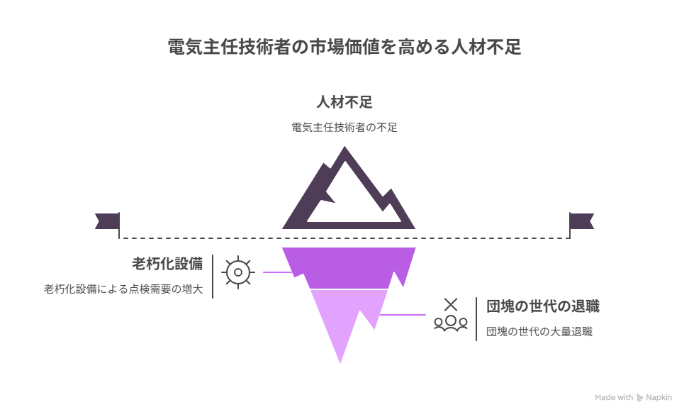 電気主任技術者の市場価値をさらに高めているのが、深刻な人材不足の課題です。